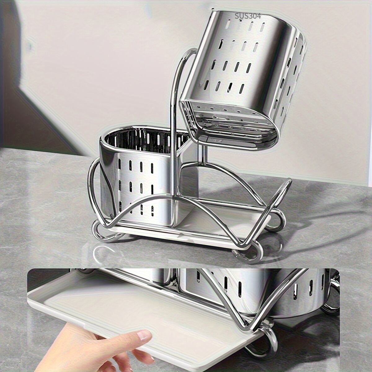 ステンレススチール食器ホルダー、SUS 304 ブラケット付き食器キャディー、キッチンカウンタートップ用スプーンホルダー - 自然仕上げ、食器収納オーガナイザー